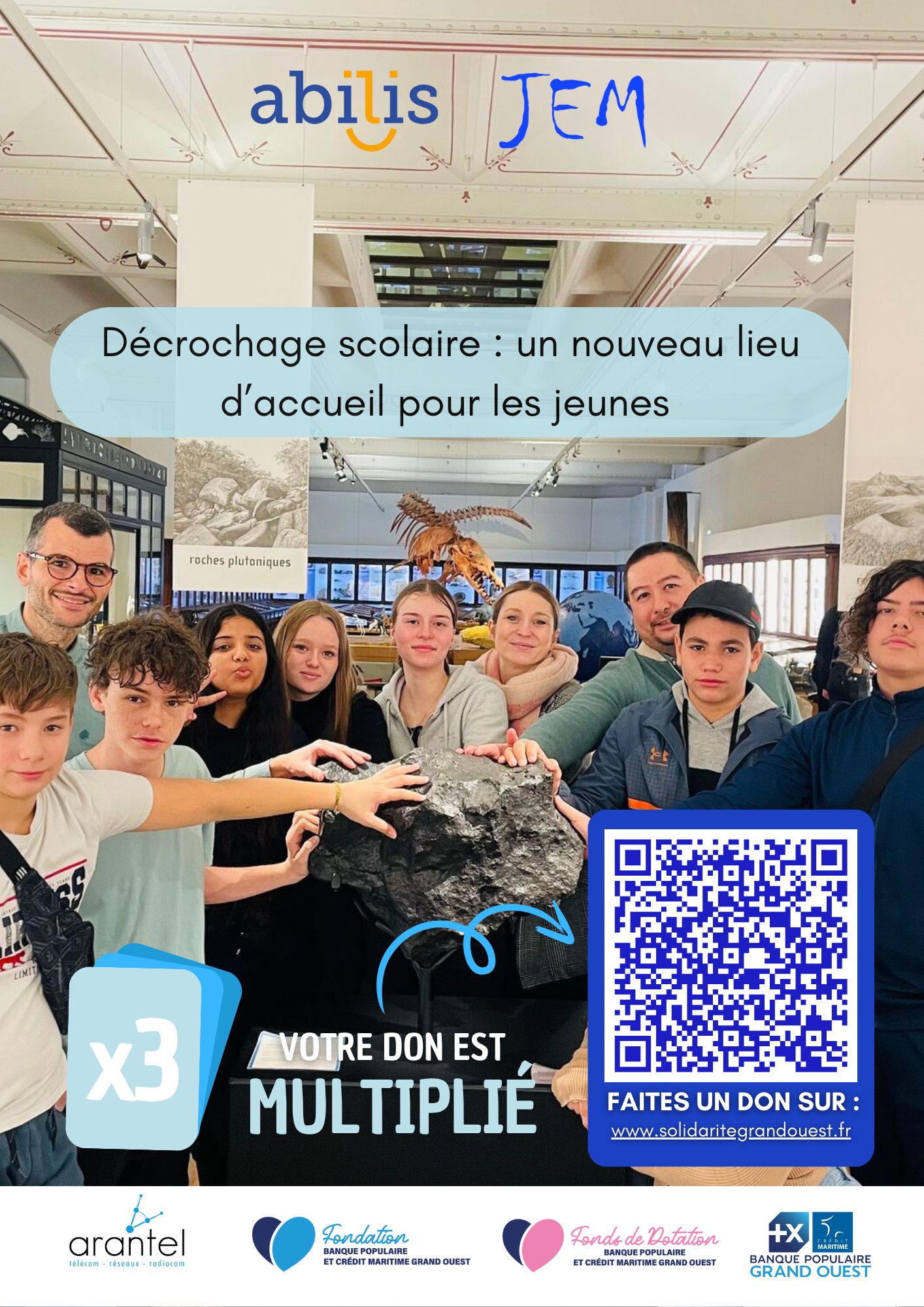 Grâce à la fondation BPGO et à l’entreprise Arantel, nous lançons une collecte solidaire en ligne jusqu’à la fin novembre pour soutenir notre programme Jeune Envie Motivation (JEM).